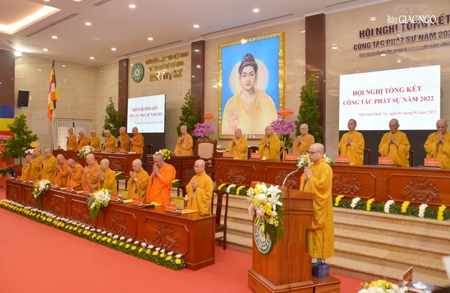 Hội nghị tổng kết công tác Phật sự năm 2022, đề ra phương hướng hoạt động Phật sự của GHPGVN TP.HCM năm 2023 khép lại sau phát biểu của Hòa thượng Danh Lung, Phó Trưởng ban Trị sự TP.HCM, đại diện Ban Tổ chức cảm tạ.