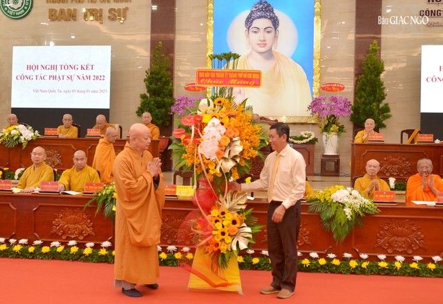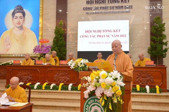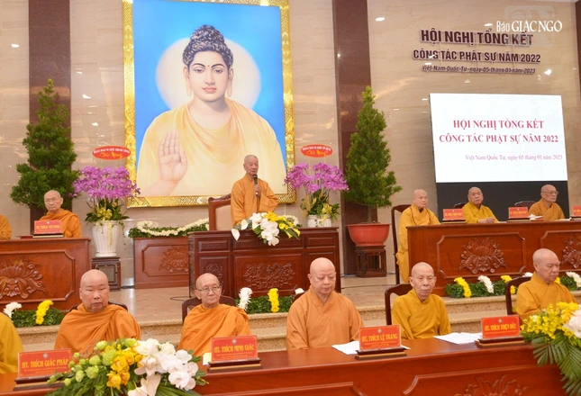Phát biểu chỉ đạo tại hội nghị, Hòa thượng Thích Thiện Nhơn, Chủ tịch Hội đồng Trị sự đã ghi nhận, tán thán kết quả hoạt động Phật sự của Phật giáo TP.HCM năm 2022.