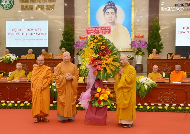 Hòa thượng cũng nêu một số thành tựu đặc biệt về nhân sự của Đại hội IX GHPGVN, trong đó TP.HCM với số lượng chư tôn đức Tăng, Ni được suy tôn, suy cử, tấn phong giáo phẩm nhiều hơn so với các tỉnh thành. Với tiềm năng về nhân lực này, Hòa thượng Chủ tịch Hội đồng Trị sự tin tưởng GHPGVN TP.HCM nhiệm kỳ X (2022-2027) sẽ hoàn thành các nhiệm vụ, mục tiêu đặt ra tại Đại hội, cũng như thực hiện đạt kết quả cao các chương trình Phật sự năm 2023 do Ban Trị sự đề ra tại hội nghị.