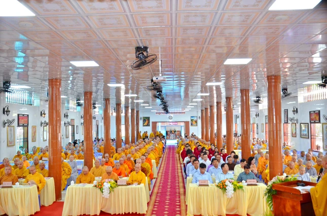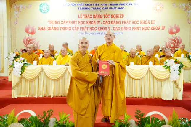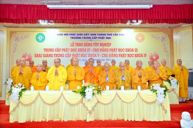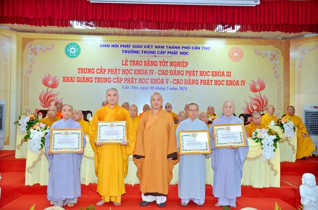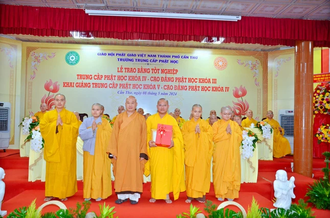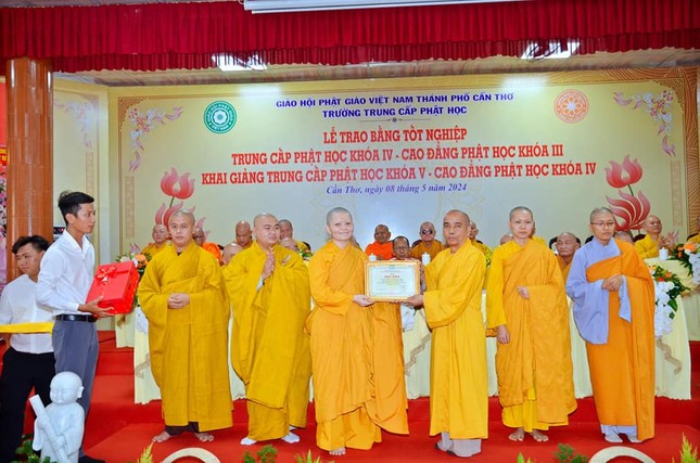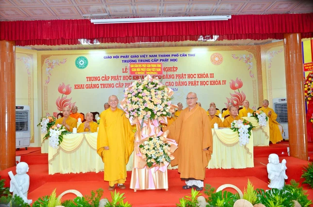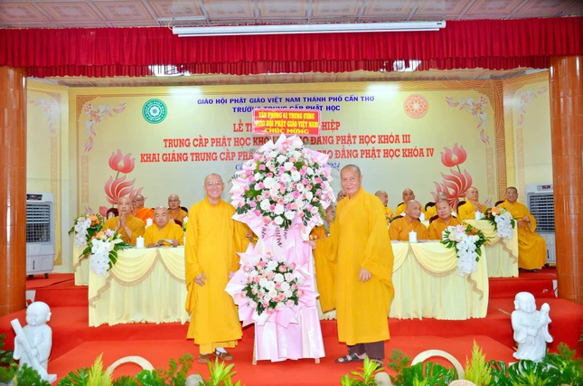 Báo cáo về kết quả đào tạo niên khóa 2021-2024 và công tác chiêu sinh niên khóa 2024-2027, Đại đức Thích Thiện Hữu, Chánh Thư ký Ban Trị sự GHPGVN TP.Cần Thơ cho biết niên khóa (2021-2024), Lớp Cao đẳng Phật học tổ chức tại tổ đình Long Quang (Q.Bình Thủy), Lớp Trung cấp Phật học tại chùa Phước Long (Q.Cái Răng).