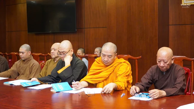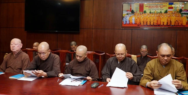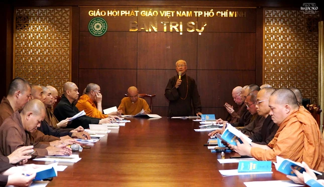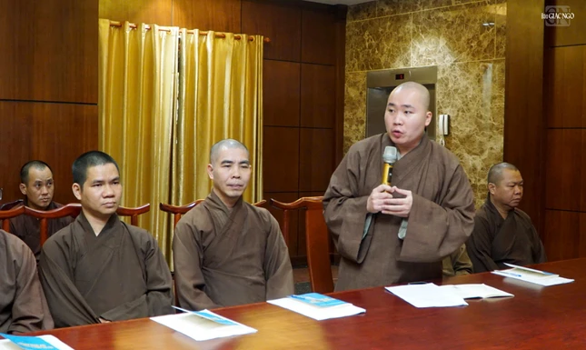 Thượng tọa Thích Thiện Chơn phổ biến một số nội dung tại buổi họp |