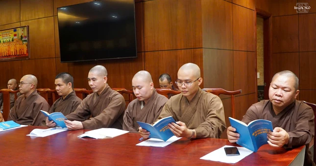 Đại diện Ban Thư ký phổ biến các nội dung liên quan hội thi. Theo đó, Hội thi giáo lý Phật tử cấp quận huyện có nội dung ôn thi căn cứ vào bộ Phật học phổ thông quyển 1 và 2.