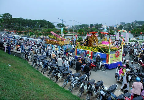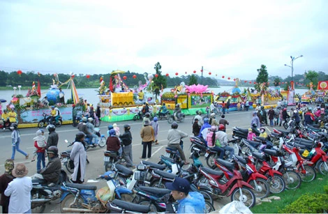 Xe hoa Phật đản diễu hành trên đường phố Đà Lạt