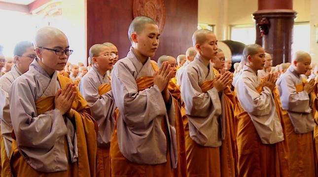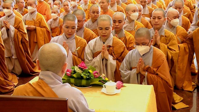 GNO - Sau lễ tác pháp của chư Tăng tại chánh điện mới của Học viện Phật giáo VN tại TP.HCM, chiều nay, 11-5, tại chùa Thanh Tâm (Phật Cô Đơn), Ban Quản viện Ni tổ chức lễ tác pháp an cư cho hơn 700 hành giả Ni là sinh viên các khóa thuộc Học viện đang tu học nội trú tại đây.