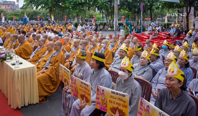 Tiếp đó, Thượng tọa Thích Minh Nhựt, Trưởng ban Trị sự Phật giáo Q.Phú Nhuận, Trưởng ban Tổ chức đọc Diễn văn Phật đản của Hòa thượng Chủ tịch Hội đồng Trị sự GHPGVN.
