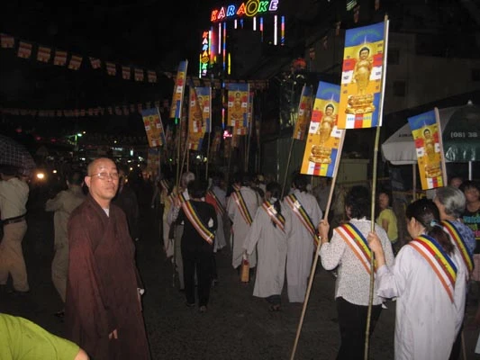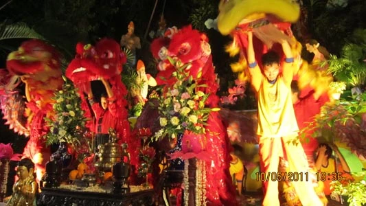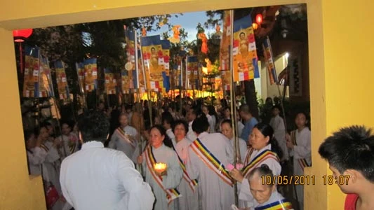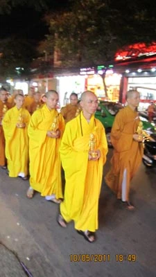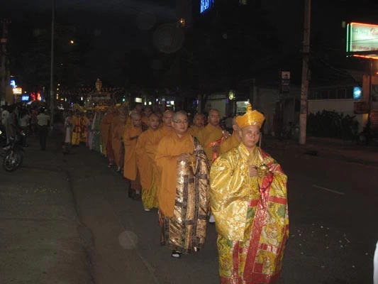 Cuộc diễu hành đường phố an bình với sự tham gia nhiệt thành của đội cảnh vệ, 6 đội lân, 3 đội rồng, ngoài ra còn có những xe hoa, kiệu rồng, điện Phật, cờ xí, biểu ngữ, đội cồng chiêng v.v. Các Phật tử trong trang phục Phật giáo các dân tộc Ấn - Trung - Việt Nam đã hân hoan diễu hành xe hoa, hưởng ứng ngày lễ trọng đại Vesak Liên Hiệp Quốc PL 2555.