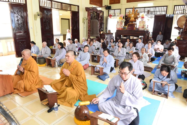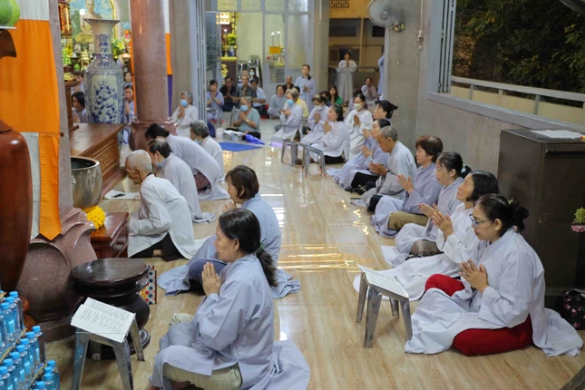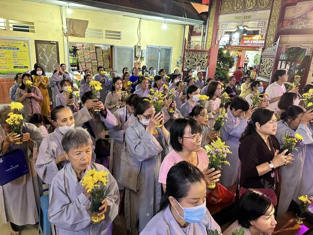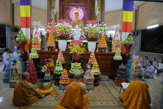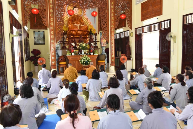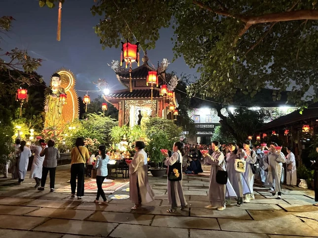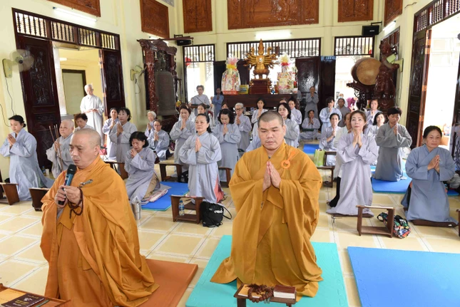 GNO - Ngày 10-3 (19-2-Quý Mão), các tự viện trên địa bàn Q.Bình Thạnh, TP.HCM đã tổ chức khóa lễ lạy ngũ bách danh, trì tụng chú Đại bi, tụng kinh Phổ môn cầu nguyện thế giới hòa bình, chúng sinh an lạc nhân ngày khánh đản Đức Bồ-tát Quán Thế Âm.