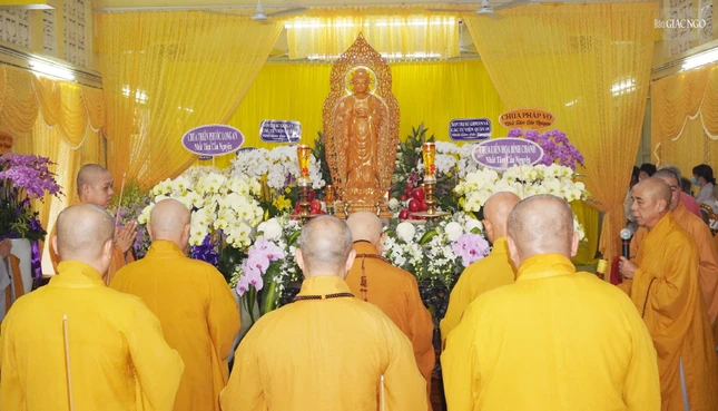 Tại buổi lễ, chư tôn đức giáo phẩm đã niêm hương lễ Phật, sái tịnh kim quan và cử hành lễ nhập kim quan theo nghi thức truyền thống.