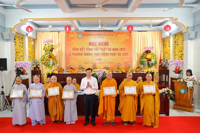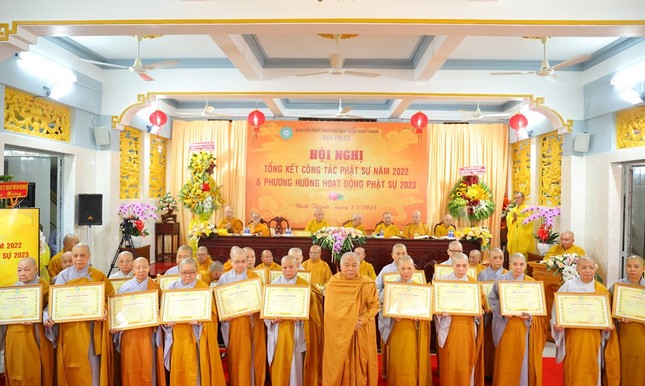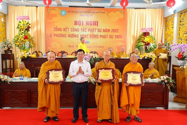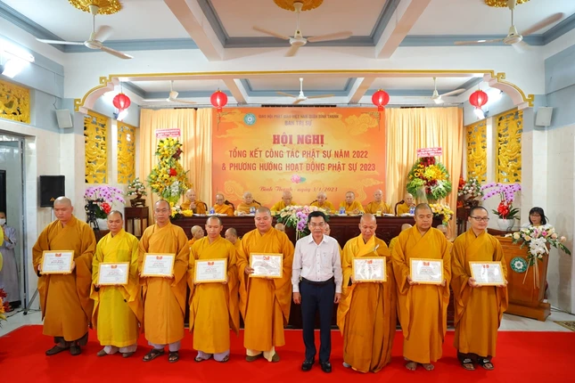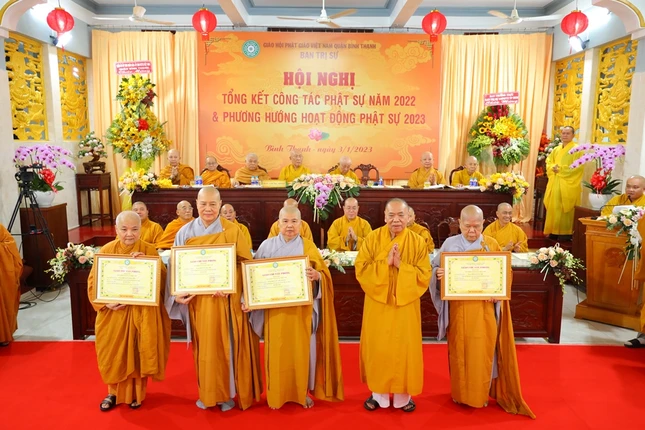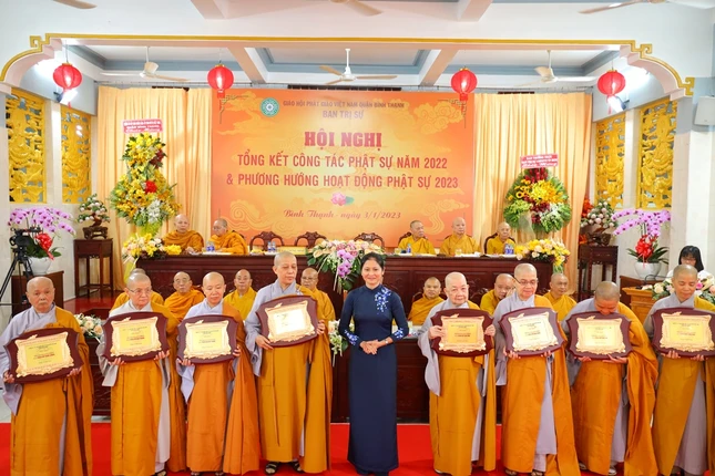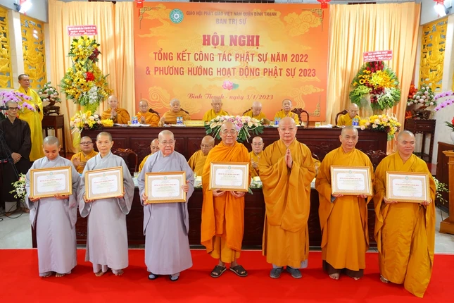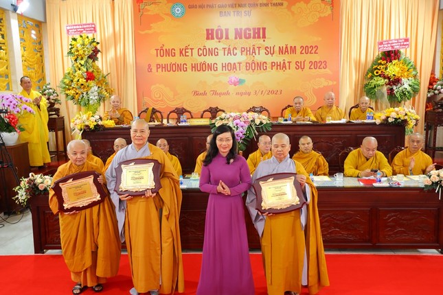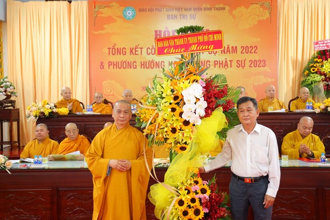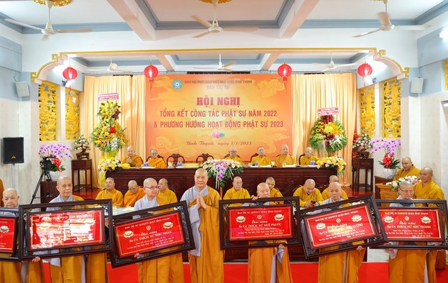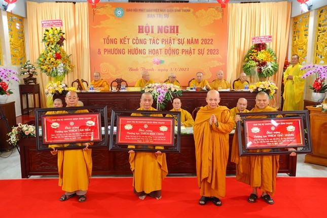 Hội nghị xem video các hoạt động Phật sự nổi bật trong năm 2022 của Phật giáo Bình Thạnh. Theo đó, quận Bình Thạnh có 78 tự viện, trong đó có 67 chùa Bắc tông, 5 tịnh xá Khất sĩ, 1 chùa Nam tông Kinh, 3 tịnh thất, 2 chùa Hoa tông với 754 Tăng Ni đang sinh hoạt ổn định.