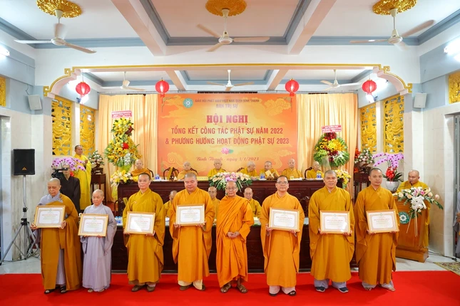 Dịp này, Ban Trị sự GHPGVN TP.HCM đã tặng Bằng Tuyên dương công đức đến 7 tập thể, 7 cá nhân; UBND quận đã trao Giấy khen cho 7 tập thể, 7 cá nhân; Ủy ban MTTQVN quận trao giấy khen 8 tập thể và 8 cá nhân đã có những đóng góp tích cực trong công tác Phật sự, phong trào từ thiện xã hội, góp phần xây dựng khối đại đoàn kết dân tộc.