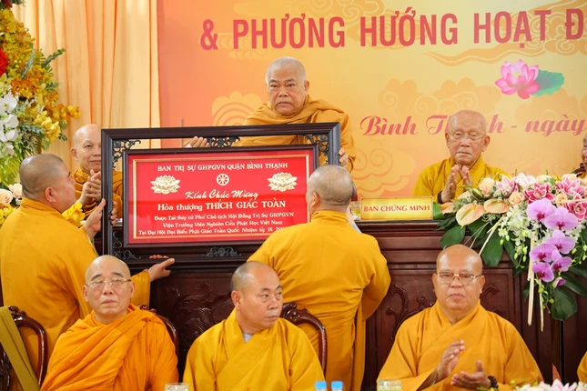Dịp này, Ban Trị sự Phật giáo quận Bình Thạnh cũng đã trao tặng khánh vàng chúc mừng đến Hòa thượng Thích Giác Tường được tiếp tục suy tôn vào Hội đồng Chứng minh và chúc mừng Hòa thượng Thích Thiện Pháp được đại hội suy cử vào vai trò Phó Chủ tịch Thường trực Hội đồng Trị sự, Trưởng ban Kiểm soát Trung ương; Hòa thượng Thích Giác Toàn, Phó Chủ tịch Hội đồng Trị sự, Viện trưởng Viện Nghiên cứu Phật học Việt Nam cùng chư tôn đức được suy cử, tái suy cử vào Hội đồng Trị sự.
