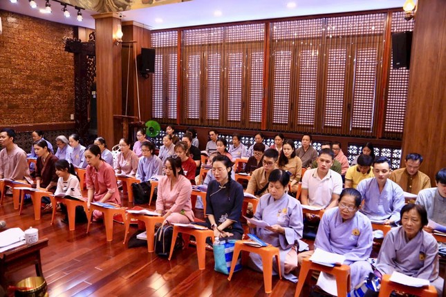 Tại lớp ôn giáo lý, mọi người cùng nhau hát thiền ca, chia sẻ những suy nghĩ và kinh nghiệm cá nhân. Sự chuyên cần và nghiêm túc của từng học viên đã làm cho buổi học trở nên vô cùng bổ ích, không chỉ giúp tăng cường kiến thức mà còn mang lại sự tĩnh tâm và thanh thản trong lòng mỗi người.