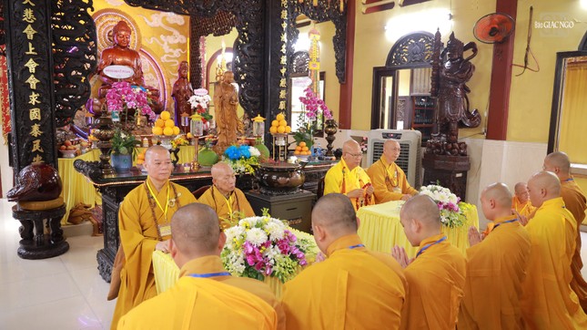 Tại chùa Bửu Liên (P.Thạnh Mỹ Tây), sau khi chư tôn đức chứng minh đảnh lễ chư vị Tổ sư, chư Tăng tuần tự theo hạ lạp vân tập chánh điện. Thượng tọa Thích Chúc Thông xướng tụng cùng đại chúng đảnh lễ Tam bảo, tụng chú Đại bi và phát lồ sám hối.