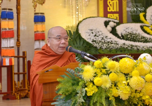 Hòa thượng Thích Thiện Tâm, Phó Chủ tịch Hội đồng Trị sự thay mặt Ban Tổ chức phát biểu cảm tạ, khép lại Đại lễ.