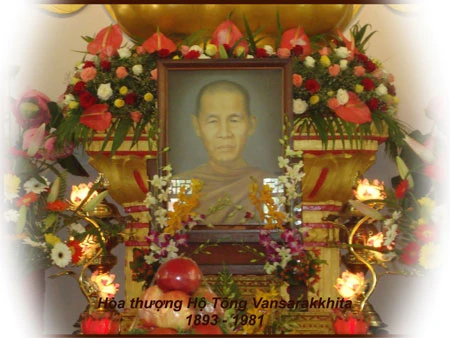 Cố Đại lão Hòa thượng Hộ Tông, thế danh Lê Văn Giảng, sinh năm 1893 tại làng Tân An, huyện Tân Châu, tỉnh Châu Đốc. Ngài trưởng thành và lập nghiệp tại xứ Campuchia. Mặc dù là một công chức uy tín, một bác sĩ tài năng mà đường công danh đang mở ra rạng rỡ, nhưng dường như vốn có túc duyên với Đạo nên Ngài thấy công danh chỉ là ảo ảnh, hạnh phúc chẳng khác mây sương. Đến năm 32 tuổi, nhờ có những linh thị nhiệm mầu thức tỉnh, Ngài quyết thoát ly những cám dỗ trần tục và phát tâm tìm đạo vào rằm tháng 10 năm 1941, Ngài đã thọ đại giới với Đức Vua Sãi Chun Nat. Đức Vua Sãi nhận ra người đệ tử mới xuất gia của mình là bậc pháp khí có thể lãnh trọng trách Như Lai sứ giả, nên không ngần ngại giao phó cho Ngài sứ mạng truyền trao Chánh Pháp Nguyên Thủy về xứ Việt Nam, và chính tại chùa Bửu Quang, Ngài đã khai pháp hội đầu tiên để thắp lên ngọn đuốc chân lý rọi soi vào lòng người dân Việt. Được thấm nhuần pháp vũ, chẳng bao lâu sau khi Ngài về nước mở đạo, chư Tăng và tín đồ Phật Giáo Nguyên Thủy Việt