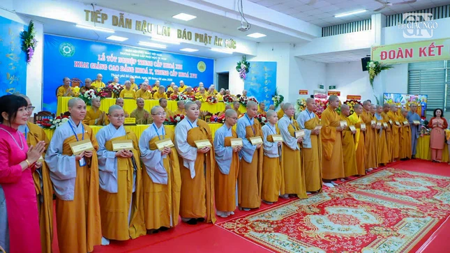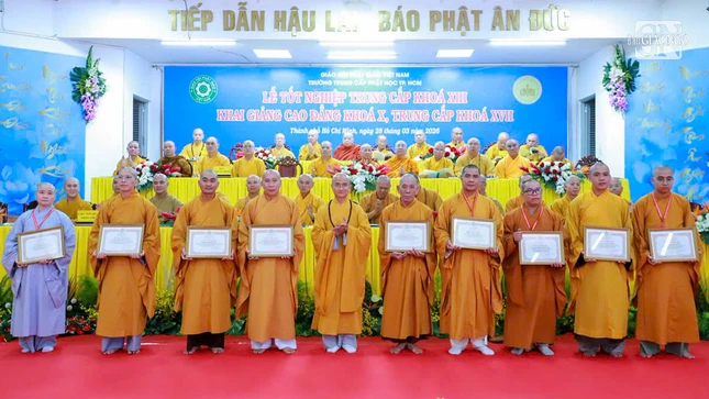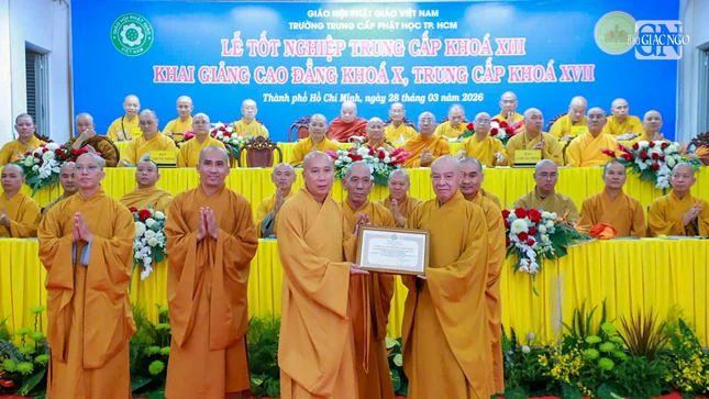 GNO - Sáng nay, 28-3, tại Trường Trung cấp Phật học TP.HCM đã diễn ra Lễ tốt nghiệp Trung cấp Phật học khóa XIII (2021-2024), đồng thời khai giảng Cao đẳng Phật học khóa X (2026-2028) và Trung cấp Phật học khóa XVII (2026-2029).