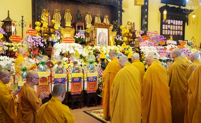Dịp này, chư Tăng Ni Ban Trị sự GHPGVN Q.10, môn hạ tổ đình Ấn Quang đã thành kính đảnh lễ khánh tuế Đức Pháp chủ và chư vị Trưởng lão Hội đồng Chứng minh theo truyền thống thiền môn.