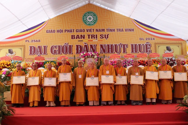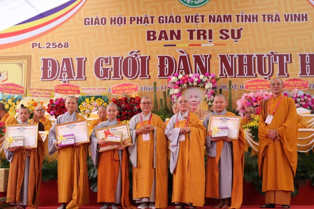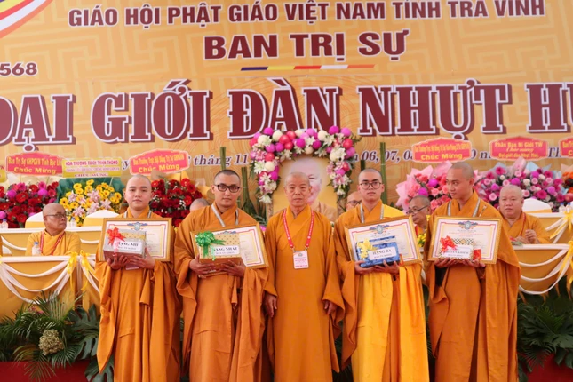 Tại buổi lễ, Ban Tổ chức đã trao tặng Bằng tuyên dương công đức đến chư tôn đức Hội đồng Thập sư Tăng - Ni, thành viên trong các tiểu ban đã đóng góp công đức vào sự thành tựu Đại giới đàn Nhựt Huệ Phật lịch 2568; trao tặng phần thưởng đến các giới tử đạt điểm thủ khoa các đàn giới.