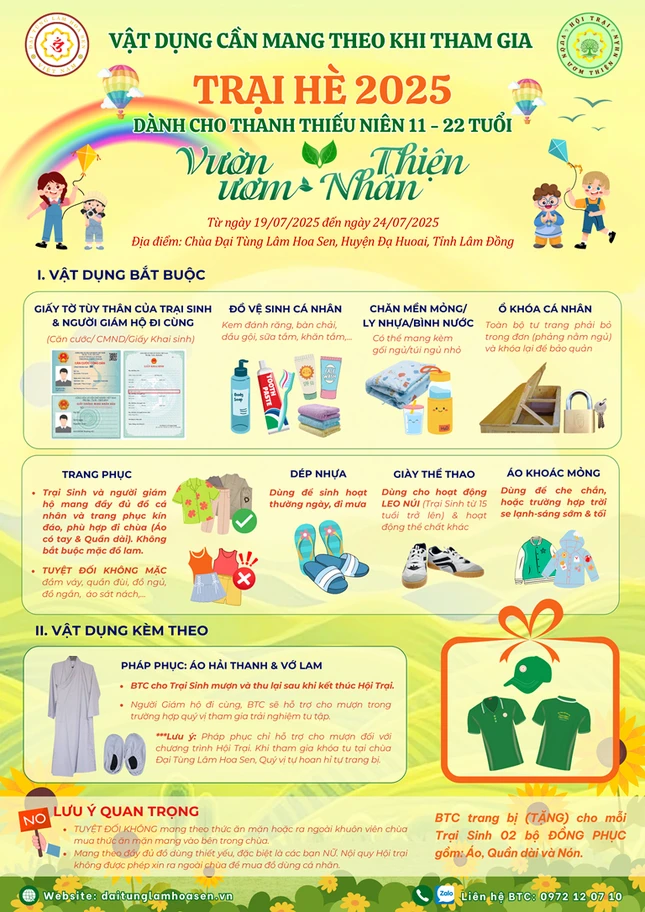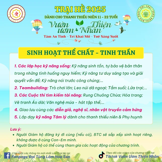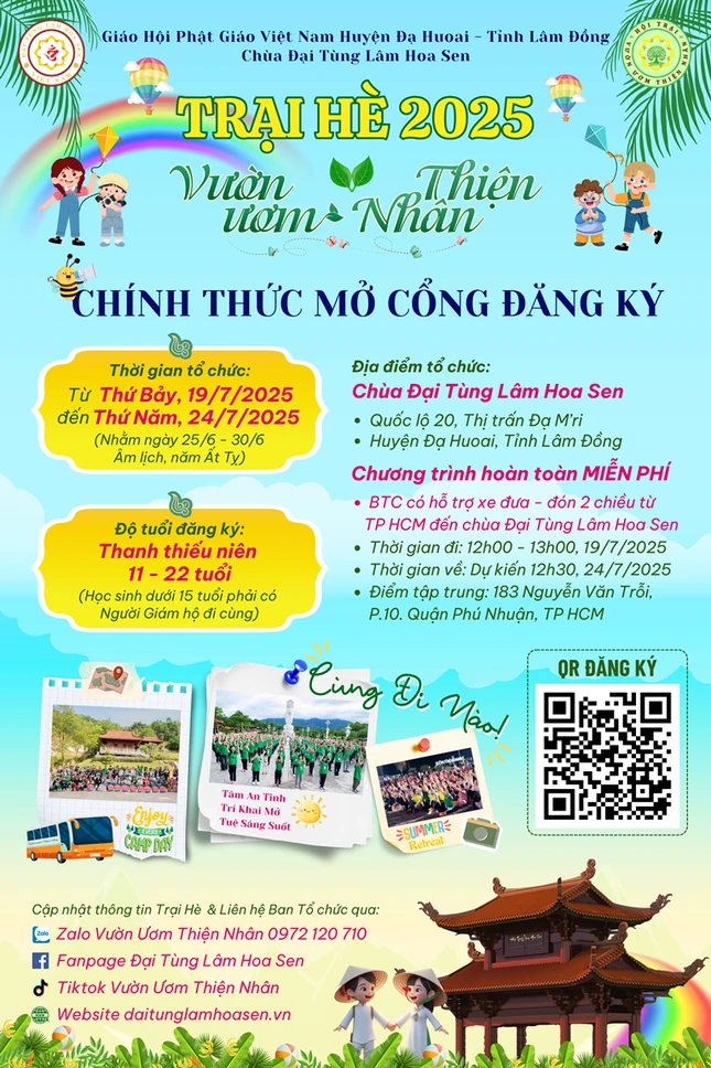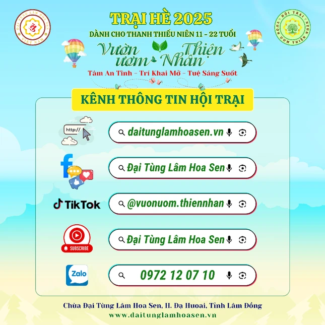- Cập nhật các thông tin mới nhất về Trại hè - Vườn ươm thiện nhân tại Fanpage Đại Tùng Lâm Hoa Sen: https://facebook.com/daitunglamhoasen.vn
