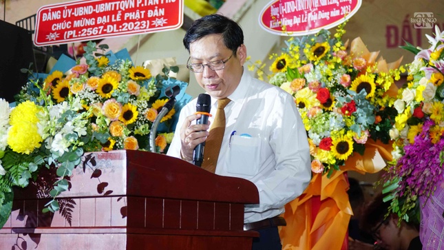 Thay mặt cho lãnh đạo chính quyền các cấp TP.Thủ Đức, ông Trần Hữu Phước, Chủ tịch Ủy ban MTTQVN TP.Thủ Đức phát biểu chúc sức khỏe đến chư Tăng Ni, tín đồ Phật giáo trên địa bàn.