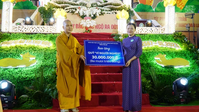 Dịp này, Ban Trị sự GHPGVN TP.Thủ Đức cũng đã trao tặng Ủy ban MTTQVN TP.Thủ Đức số tiền 100 triệu đồng cho quỹ “Vì biển đảo quê hương Vì tuyến đầu Tổ quốc” và 30 triệu đồng cho Quỹ “Vì người nghèo” của P.Phước Bình.