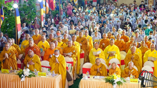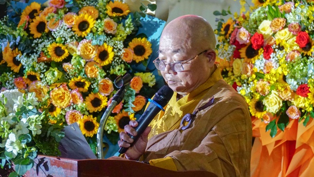 Đại diện Ban Tổ chức Đại lễ, Thượng tọa Thích Thiện Hảo, Phó Trưởng ban Trị sự GHPGVN TP.Thủ Đức phát biểu cảm tạ, khép lại chương trình đại lễ.