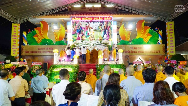 Sau nghi thức chào Quốc kỳ, Đạo kỳ, và phút nhập từ bi quán tưởng niệm, toàn thể hội chúng đã lắng lòng nghe Trưởng lão Hòa thượng Thích Minh Thông tuyên đọc Thông điệp Phật đản Phật lịch 2567 của Đức Pháp chủ GHPGVN.
