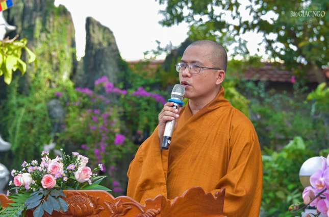 Thượng toạ Thích Thiện Từ, Trưởng ban Trị sự Phật giáo H.Nhà Bè, Trưởng ban Tổ chức Đại lễ Phật đản của Ban Trị sự H.Nhà Bè đọc Diễn văn Phật đản Phật lịch 2569 của Trưởng lão Hòa thượng Chủ tịch Hội đồng Trị sự gửi đến toàn thể Tăng Ni, Phật tử.