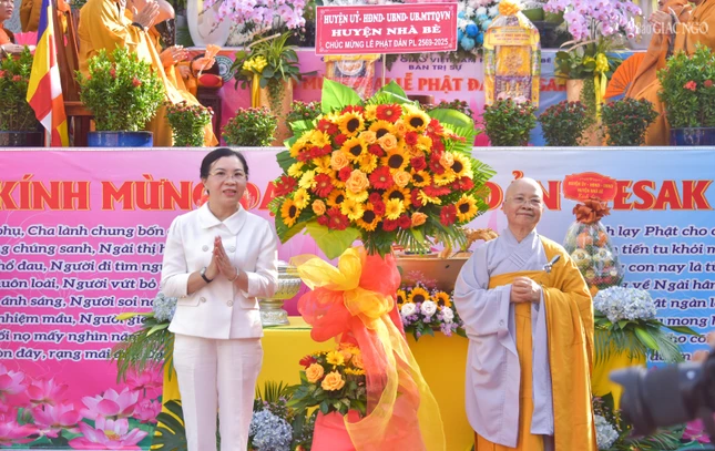 Nhân sự kiện này, bà Trương Kim An, Chủ tịch Ủy ban MTTQVN H.Nhà Bè thay mặt lãnh đạo chính quyền có lời chúc mừng đến toàn thể Tăng Ni, Phật tử một mùa Phật đản an lành.