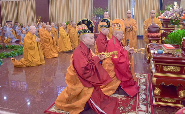Theo sự thỉnh cầu của Ban Trị sự, Đức Pháp chủ đã quang lâm niêm hương chú nguyện chứng minh; Hòa thượng Thích Lệ Trang, Phó Chủ tịch Hội đồng Trị sự, Trưởng ban Nghi lễ Trung ương, Trưởng ban Trị sự Phật giáo TP.HCM đương vi đệ nhất đàn chủ; cùng chư tôn đức Ban Thường trực Ban Trị sự GHPGVN TP.HCM vào phương vị đàn chủ 6 đàn còn lại thực hiện nghi thức nhiễu đàn, sái tịnh đàn tràng và khai kinh Dược Sư.