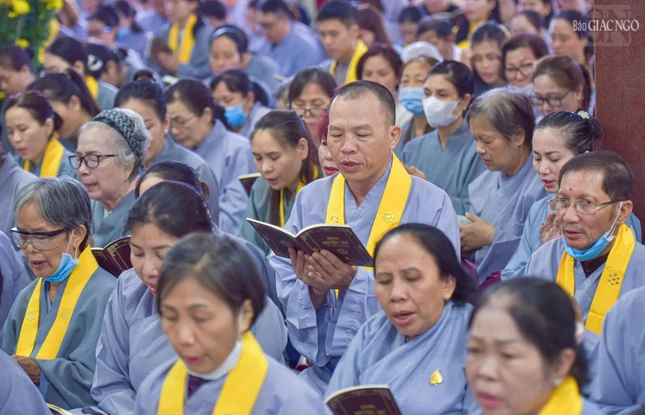 Chư vị đàn chủ cùng chư tôn đức Ban Kinh sư do Ban Nghi lễ GHPGVN TP.HCM phụ trách, đã hướng dẫn toàn thể đạo tràng nhất tâm hiệp lực đồng trì tụng kinh Dược Sư, hồi hướng công đức kỳ nguyện quốc thới dân an, nguyện phong điều vũ thuận.