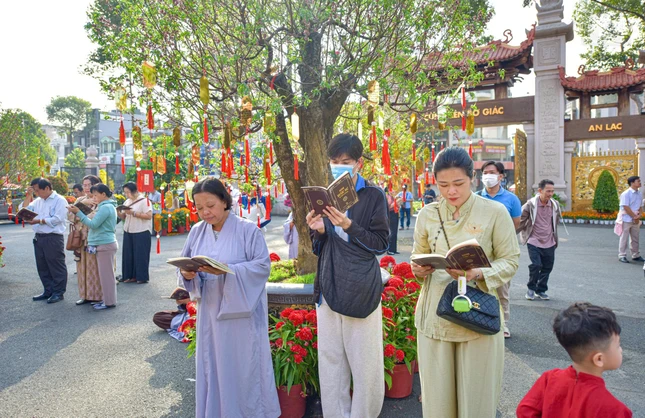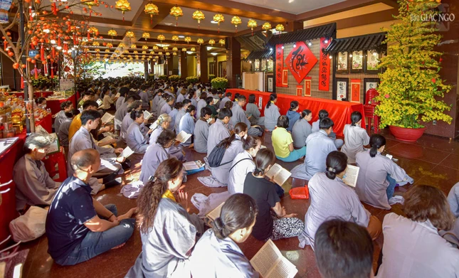 Người dân, Phật tử TP.HCM về Việt Nam Quốc Tự tham gia trì tụng kinh Dược Sư vào sáng mồng 6 Tết |