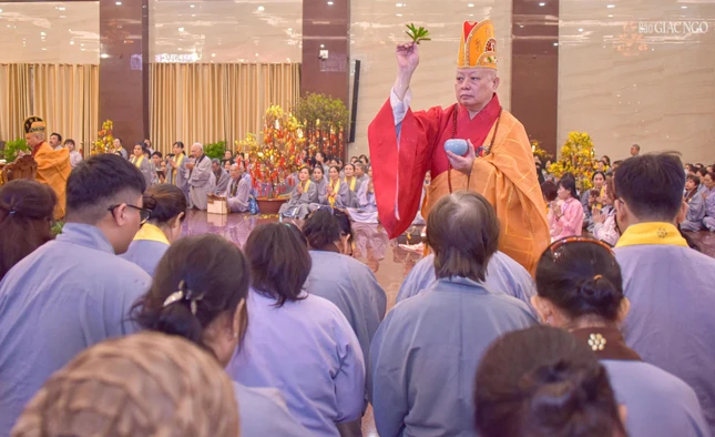Hòa thượng Thích Lệ Trang cử nhành dương sái tịnh đàn tràng |