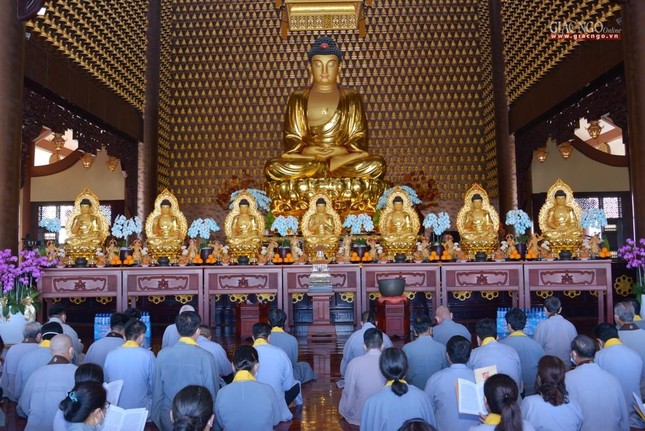 Buổi lễ tại chánh điện chùa Huê Nghiêm