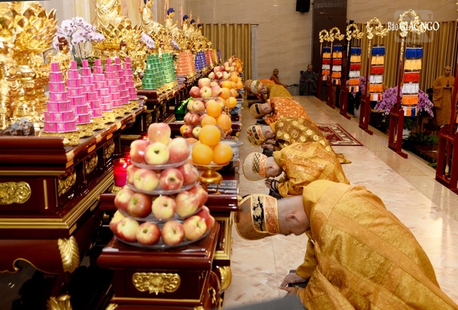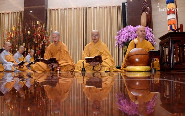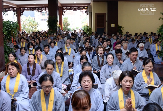 Sau nghi thức khai đàn, chư vị đàn chủ cùng chư tôn đức Ban Kinh sư do Ban Nghi lễ GHPGVN TP.HCM phụ trách, đã hướng dẫn toàn thể đạo tràng nhất tâm hiệp lực đồng trì tụng kinh Dược Sư, hồi hướng công đức kỳ quốc thới dân an, nguyện phong điều vũ thuận.