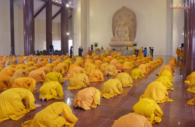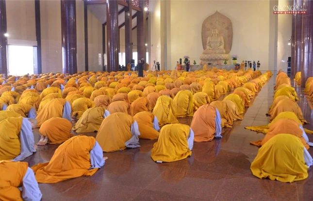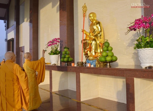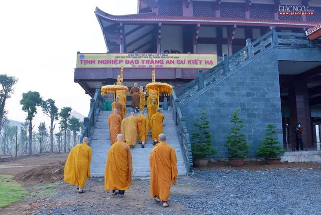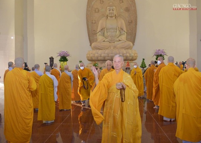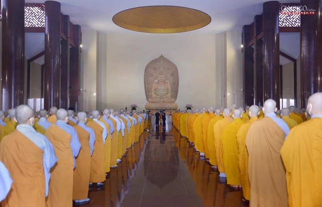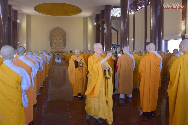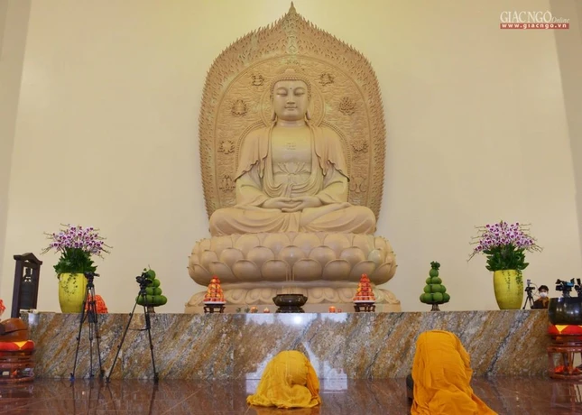 GNO - Sáng nay 11-5 (11-4-Nhâm Dần), tại chánh điện mới tọa lạc trong khuôn viên cơ sở 2 Học viện Phật giáo VN tại TP.HCM (xã Lê Minh Xuân, huyện Bình Chánh), Hội đồng Điều hành đã trang nghiêm cử hành nghi lễ an vị Phật và kiết giới trường theo truyền thống và luật Phật chế.