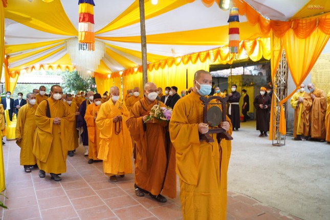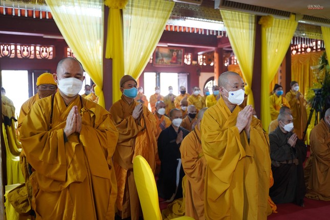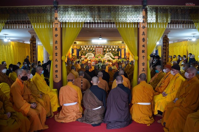 Trước đó, Hoà thượng Thích Bảo Nghiêm, Hoà thượng Thích Quảng Hà và chư Tăng đã cử hành nghi thức tâm linh truyền thống cúng Tổ, cung tiến Giác linh Đại lão Hoà thượng.