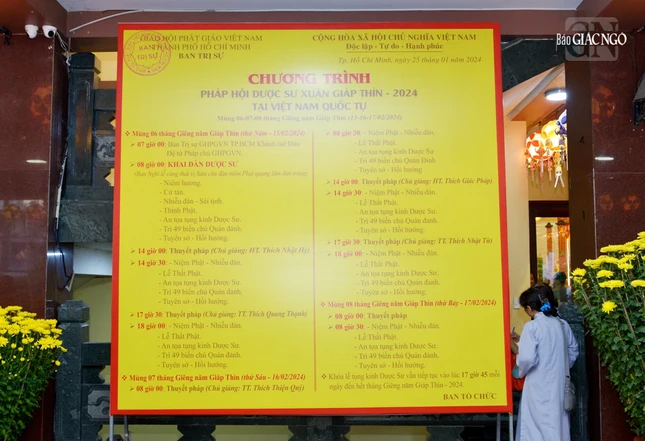 Theo chương trình phổ cáo, Pháp hội Dược sư Xuân Giáp Thìn 2024 tại Việt Nam Quốc Tự sẽ diễn ra từ ngày mồng 6 tháng Giêng cho đến hết ngày mồng 8 tháng Giêng năm Giáp Thìn (15-2 đến 17-2-2024).