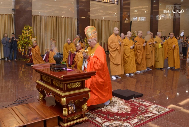 Tiếp đó, phần nghi lễ khai đàn Pháp hội Dược Sư được trang nghiêm cử hành. Trong tiếng đồng thanh trì tụng thần chú Đại bi, Hòa thượng Thích Lệ Trang, Trưởng ban Nghi lễ T.Ư, Trưởng ban Trị sự Phật giáo TP.HCM đương vi đệ nhất đàn chủ, cùng chư tôn giáo phẩm Ban Thường trực Ban Trị sự GHPGVN TP.HCM được cung thỉnh vào phương vị đàn chủ 6 đàn còn lại đã thực hiện nghi thức nhiễu đàn, cử nhành dương sái tịnh đàn tràng.