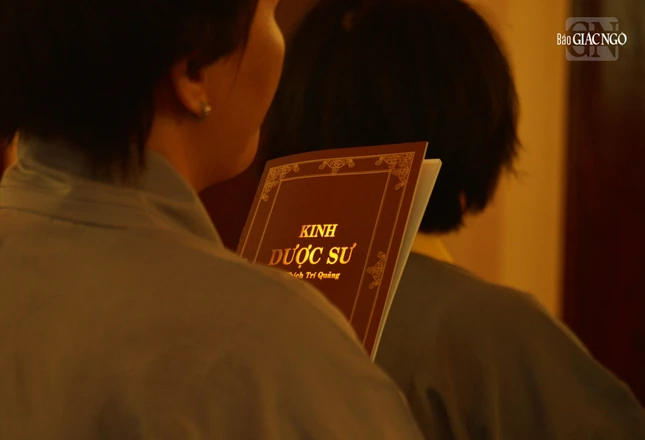 Cũng trong sáng ngày mồng 6 tháng Giêng, sau nghi thức khai đàn, chư vị đàn chủ cùng chư tôn đức Ban Kinh sư đã hướng dẫn đạo tràng đồng trì tụng kinh Dược Sư, hồi hướng công đức nguyện cầu trăm họ đều lạc nghiệp an cư, muôn nơi được thái bình thịnh trị.