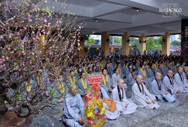 GNO - Sáng nay, mồng 3 Tết Giáp Thìn (12-2-2024), tại chùa Huê Nghiêm - TP.Thủ Đức (TP.HCM), đông đảo Phật tử Đạo tràng Pháp Hoa đã trở về tham dự Lễ khai kinh Dược Sư đầu năm mới.