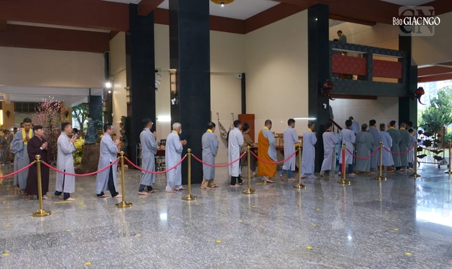 Đại lão Hòa thượng Thích Trí Quảng, viện chủ chùa Huê Nghiêm thân lâm chứng minh, niêm hương bạch Phật; sau đó, Hòa thượng Thích Lệ Trang chủ trì nghi lễ, cử hành sái tịnh đàn tràng thất Phật Dược Sư được tôn trí tại chánh điện.
