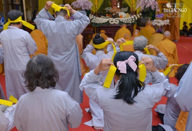 Sau lễ nhập kim quan, Hòa thượng sám chủ và chư tôn đức Ban Nghi lễ trang nghiêm thỉnh Giác linh an vị, môn đồ pháp quyến thọ tâm tang.