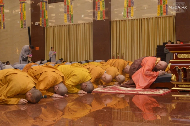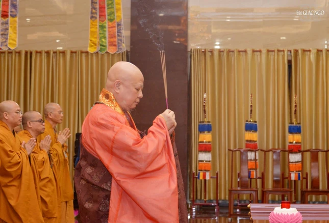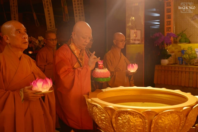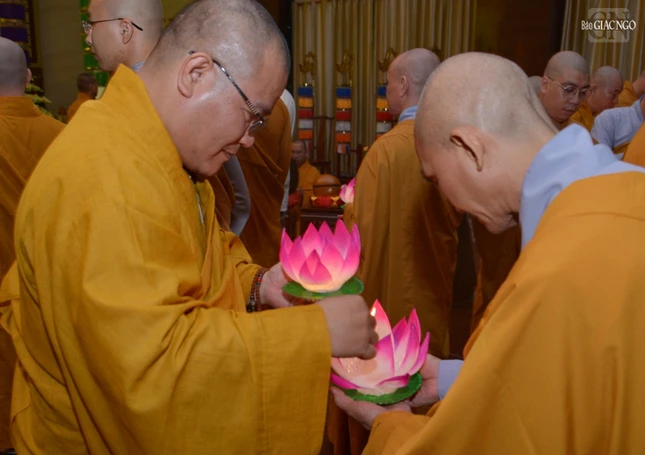 Sau lời khai thị, chư tôn đức đã thành kính dâng hương đảnh lễ chư Phật và chư vị Bồ-tát. Hòa thượng Thích Lệ Trang đã truyền đăng đến chư Tăng và sau đó ánh sáng được truyền đến chư Tăng, Phật tử hiện diện.