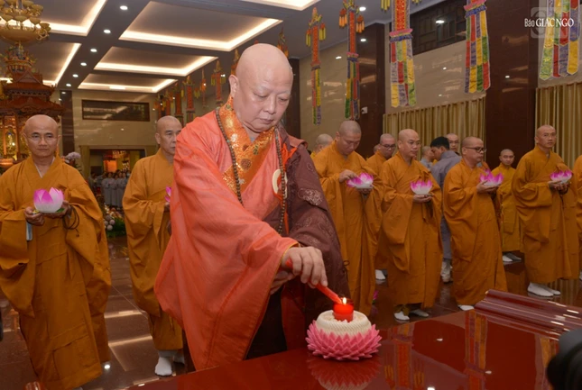 Theo đó, Hòa thượng Trưởng ban Trị sự GHPGVN TP.HCM chia sẻ về lễ thắp nến tưởng niệm và phóng liên đăng là để phổ cáo, triệu thỉnh pháp giới lục đạo, quán thân bình đẳng cùng về pháp hội tại Việt Nam Quốc Tự để nghe kinh, thọ thực.