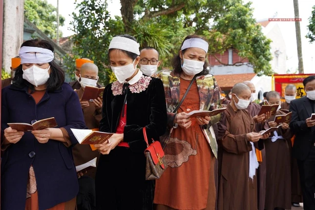 Chư tôn giáo phẩm Hội đồng Trị sự GHPGVN có sự hiện diện của Hòa thượng Thích Thiện Nhơn, Chủ tịch Hội đồng Trị sự, Trưởng ban Tổ chức lễ tang; Hòa thượng Thích Thanh Nhiễu, Phó Chủ tịch Thường trực Hội đồng Trị sự, Phó Thường trực Ban Tổ chức lễ tang; Hòa Thích Bảo Nghiêm, Phó Chủ tịch Hội đồng Trị sự, Phó Thường trực ban Tổ chức lễ tang, cùng chư tôn đức Ban Thường trực Hội đồng Trị sự, Văn phòng Trung ương Giáo hội; Ban, Viện Trung ương, Ban Trị sự GHPGVN TP.Hà Nội, các tỉnh thành phía Bắc; Tăng Ni sinh Học viện Phật giáo VN tại Hà Nội, đại diện các cơ sở tự viện, cùng đại diện dòng tộc họ Bùi đã trở về chốn Tổ Viên Minh đảnh lễ, tưởng niệm.