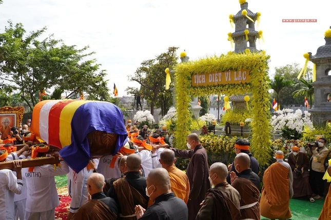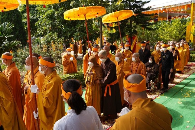 Trước khi cử hành nghi lễ cung thỉnh kim quan Đức Pháp chủ nhập bảo tháp, trong thời khắc thiêng liêng, khung cảnh uy nghiêm khói trầm quyện tỏa trước Giác linh đài Đại lão Hòa thượng Pháp chủ GHPGVN, thay mặt Hội đồng Chứng minh, Hội đồng Trị sự GHPGVN, cùng toàn thể Tăng Ni, Phật tử trong và ngoài nước, Trưởng lão Hòa thượng Thích Trí Quảng, Đệ nhất Phó Pháp chủ kiêm Giám luật Hội đồng Chứng minh dâng lời tưởng niệm. (Đọc toàn văn bài tưởng niệm tại đây).