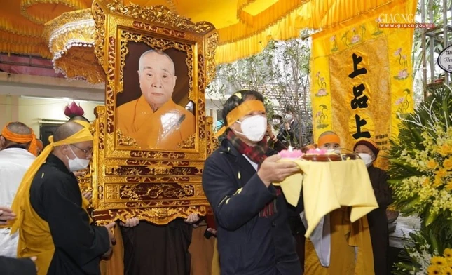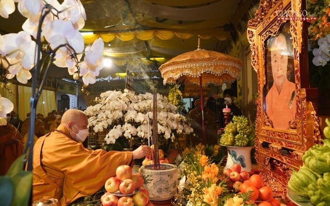 Theo đó, Hòa thượng Chủ tịch Hội đồng Trị sự nhắc lại nét nổi bật trong công hạnh của Đại lão Hòa thượng Phó Pháp chủ GHPGVN: “Gần một trăm năm thác tích trần hoàn, ngài đã thắp sáng tâm đăng bao thế hệ. Từ thuở đồng chân nhập Đạo, ngài một lòng tinh tấn tu hành, đèn trí tuệ ngày thêm sáng tỏ”.
