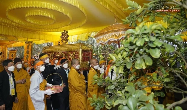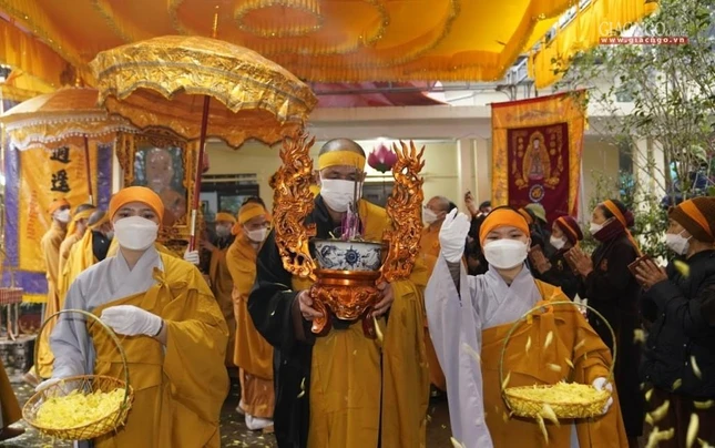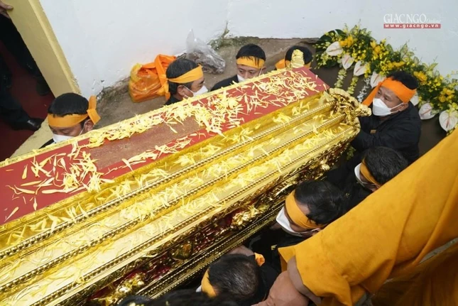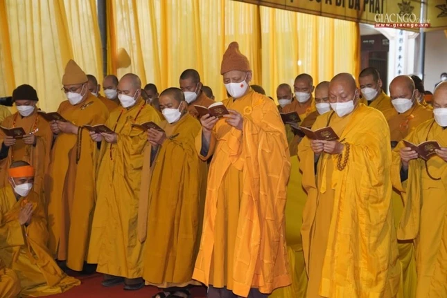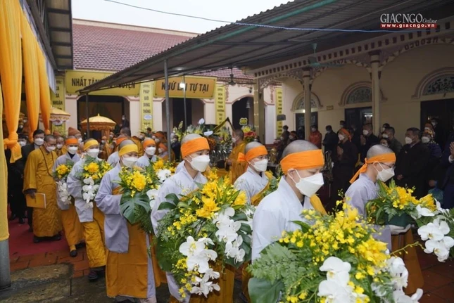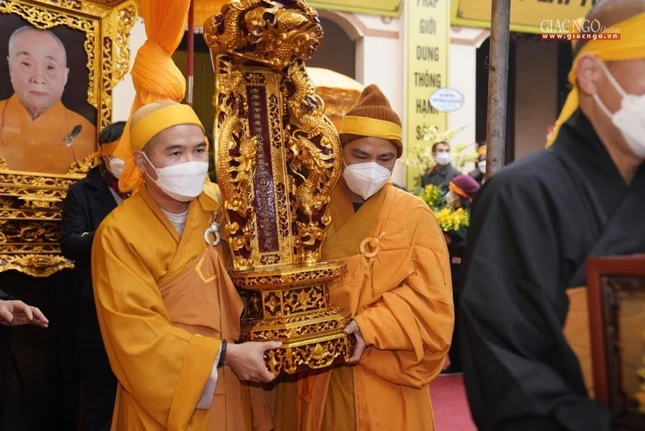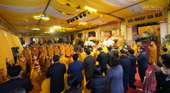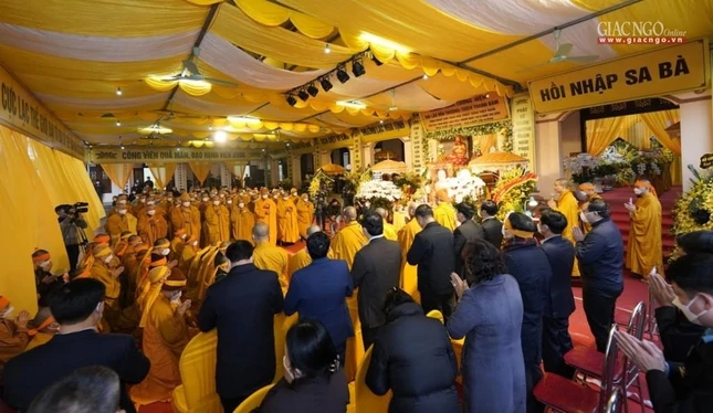 GNO - Sáng 21-1 (19-12-Tân Sửu), Ban Thường trực Hội đồng Chứng minh, Hội đồng Trị sự, Ban Trị sự GHPGVN tỉnh Ninh Bình và môn đồ pháp quyến trang nghiêm cử hành lễ truy điệu, phụng tống kim quan Đại lão Hòa thượng Thích Thanh Đàm nhập bảo tháp.