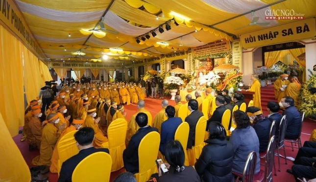 Tham dự còn có đại diện lãnh đạo Ủy ban Trung ương MTTQVN, Ban Tôn giáo Chính phủ, các cơ quan trung ương, tỉnh Ninh Bình và các tỉnh thành khác cùng đông đảo Phật tử tham dự.